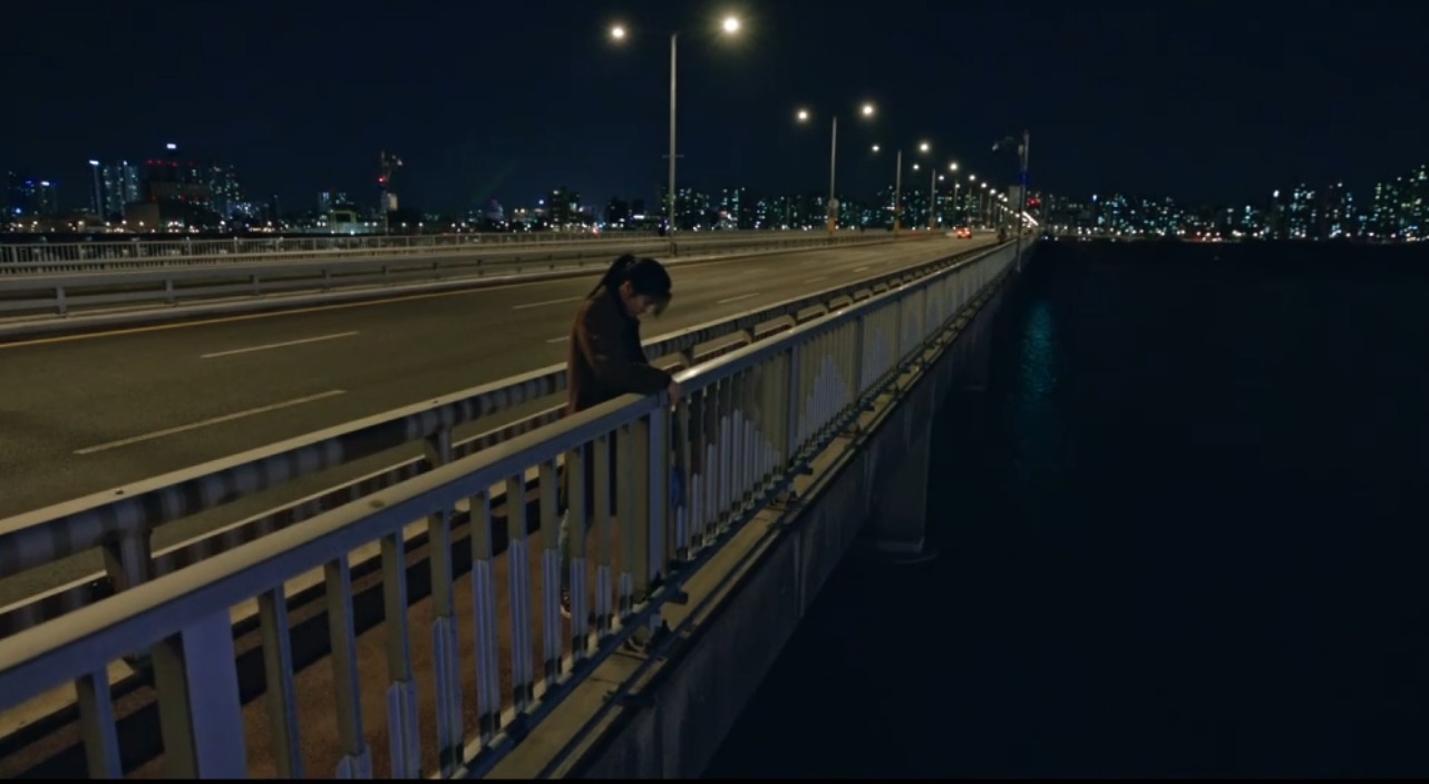 집 근처로 온 산영은 친구에게 같이 시험준비했다고 거짓말을 해달라고 부탁하지만 친구랑 같이 있던 엄마가 전화를 빼앗고 산영을 힘들게 하는 말을 한다.( 보이스 피싱당해서 엄마를 무시하냐, 집주인이 방세 내라고 전화했다. 염해상이랑 같이 있었냐 등) 산영은 전화를 끊고 다리 위로 가 난간을 보다 난간 위에 서 본다.