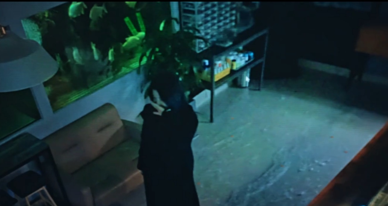 하이힐 소리 그리고 문을 두드리는 소리. 공포에 떨고 있는 남자가 문을 연다. 하이힐을 신은 여자가 보이고 그 후 남자는 소리도 못내고 죽임을 당한다.