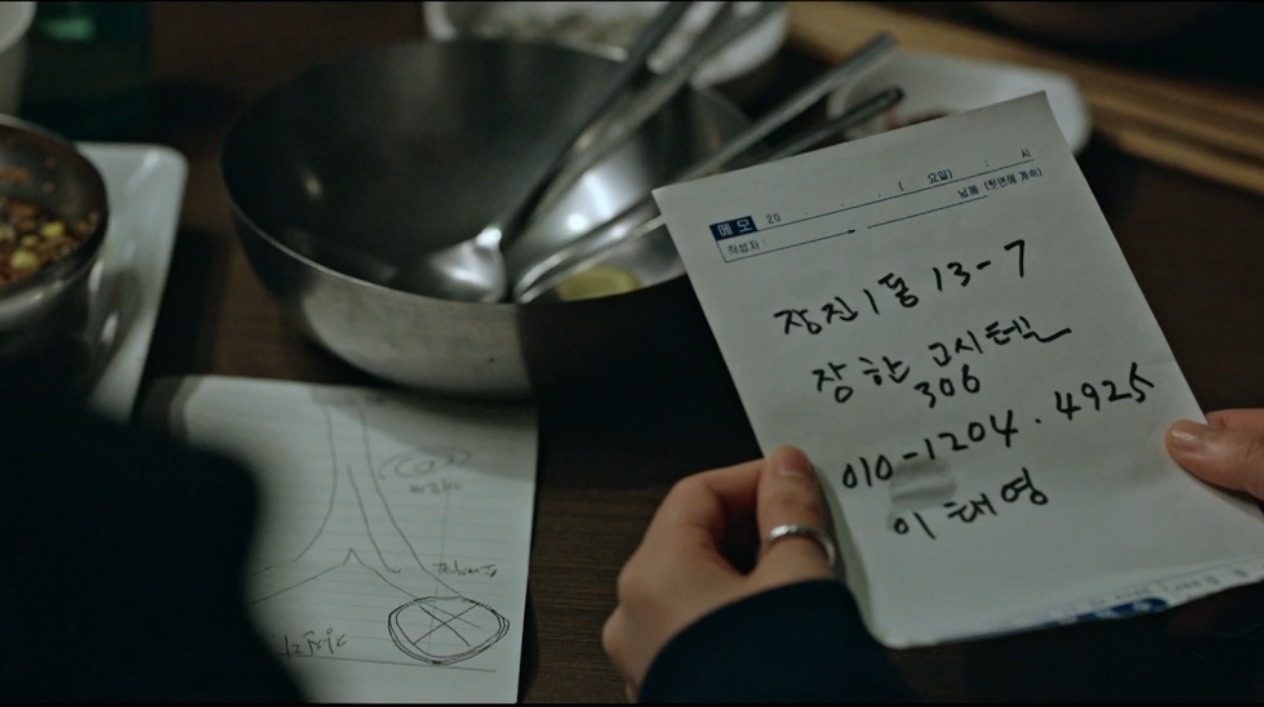 이홍새 형사는 고시텔 총무에게 이태영에 대해 묻고, 이태영이 사라지기전에 하이힐 소리, 문 두드리는 소리는 못 들었냐고 물어본다. 그리고 같은 층에 사는 사람들이 그 소리를 들었다는 걸 알게 된다. 산영은 밖에서 그 얘기를 듣게 엿듣고, 이홍새 형사에게 엿들었다는 의심과 산영이 이태영을 안다는 사실에 산영이 아는 사람한테는 다 이상한 일이 생긴다며 의심스러워한다.