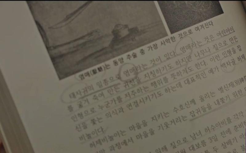 구강모 교수가 썼다는 책의 내용. 악귀가 말한 p.21과 p.176는 태자귀, 염매 등의 내용이 적혀 있다.