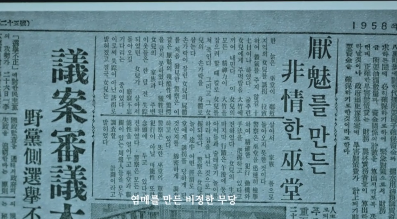 염해상은 구강모 교수가 기사를 가져왔다는 얘기에 도서관에 가서 자료를 찾아본다. 1958년도 장진리 인근 지역신문위주로 기사를 찾아보기로 한다. 배씨댕기, 덕달이 나무 다 어린아이를 가리키고 있으니 이목단이란 아이를 꼭 찾아야 한다고 말한다.
