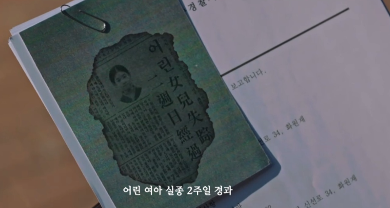 서문춘 형사는 구강모 교수의 모친사건 담당에게서 복원한 노트의 일부, 어린 여자아이 실종 사건 기사를 받아온다.