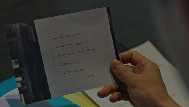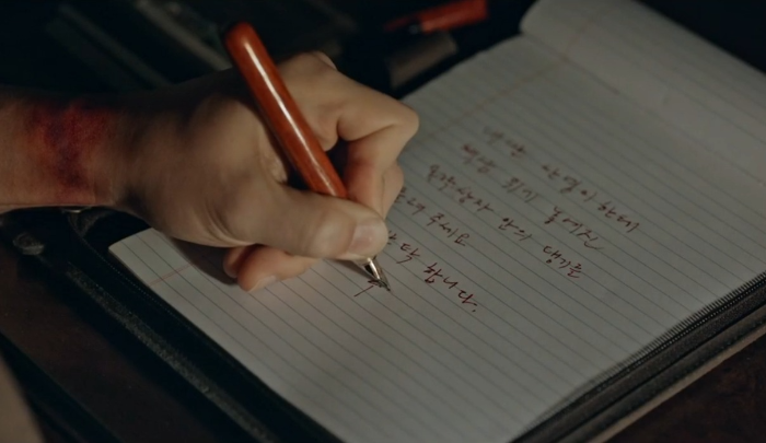 자기에게 보낸 편지도 꺼내서 본 염해상은 서문춘에게 처음부터 이상했다고 말한다. 민속학자는 금기를 깨는 걸 싫어하는데 왜 붉은색 볼펜으로 편지를 쓴걸까. 그리고 산영이 한 말을 생각해 낸다. 구강모 교수가 '내가 아니다.' 라고 했던 말. 그리고 편지를 쓴게 악귀의 소행이라는 걸 알게 된다.