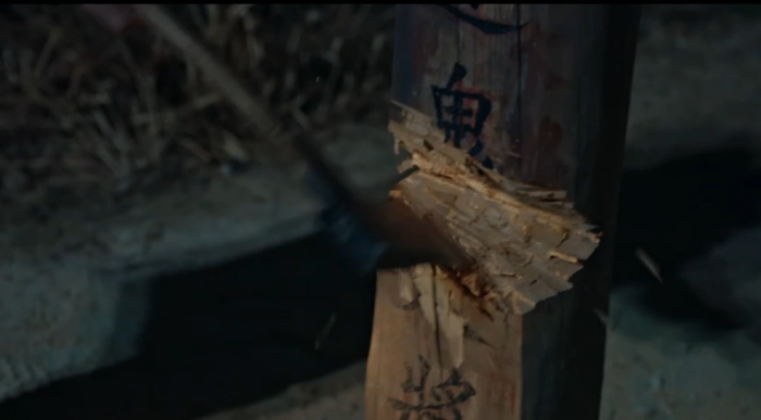 악귀 때문에 누군가가 죽은 장소. 새끼줄. 왼쪽으로 꼬여 있는 새끼줄. 보통은 오른쪽으로 꼬여있는데 왼쪽으로 꼬여있다는 건 금줄. 귀신을 막을 때다. 그리고 염해상은 산영엄마의 친정집으로 향한다.