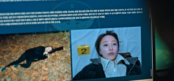 이홍배 형사를 위로하는 다른 형사. 그 형사의 책상 위에서 사건사진을 보는데 자신이 어제 간 곳이다. 그러면서 사건에 대해 듣는다. 심장마비에 의한 돌연사. 하지만 이상한 점이 있다. 시신을 움직인 흔적과 고가의 명품백이 사라진 점이다. 한정품으로 나온 백으로 피해자 이니셜 LJR이 적혀있었다고 한다.