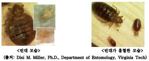 하지만 빈대는 흡혈할 때만 잠시 나타났다가 흡혈한 후 어두운 곳으로 다시 숨기 때문에 , 빈대를 직접 눈으로 확인하기는 어렵고, 빈대의 배설물이나 탈피각 등의 흔적을 찾는 것이 더 효율적입니다