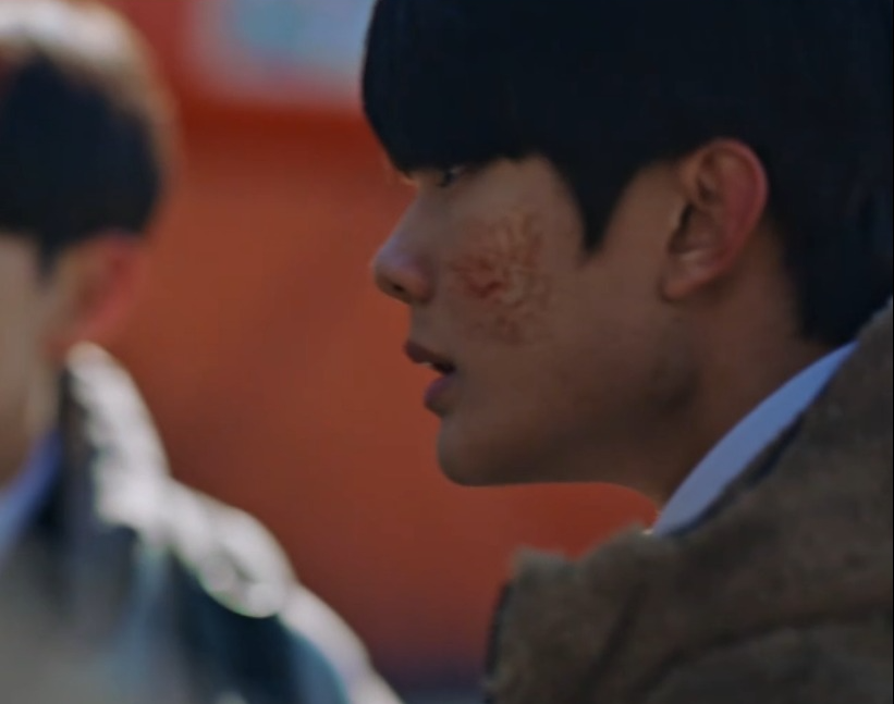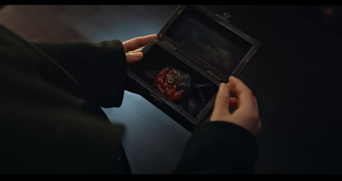 아빠의 유품으로 붉은댕기를 받고 아빠가 남긴 유품을 만지는 순간 듣게 되는 목소리 "받았다" 엄마는 그 물건을 내던지고 못 받게 하지요. 엄마의 성화에 물건을 그냥 내버려두고 돌아서지만, 그 순간 염해상을 만나게 된다. 그리고 그 순간 염해상은 악귀가 산영에게 붙었다는 걸 알게 된다