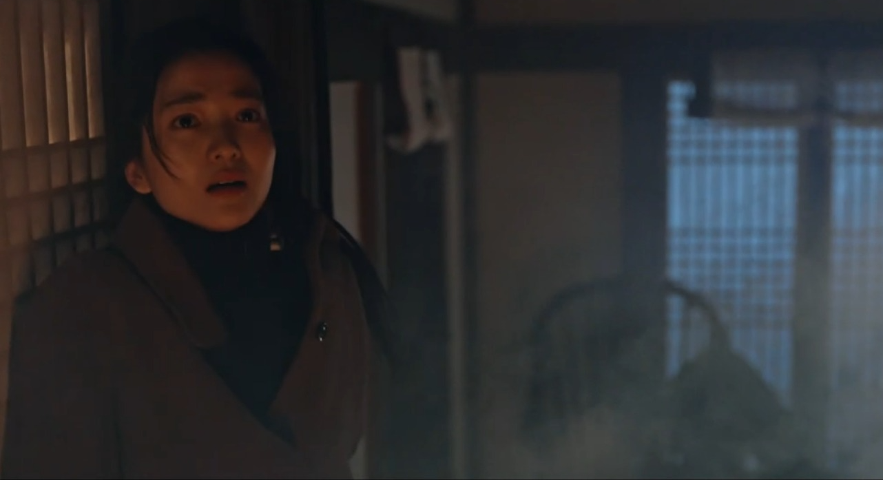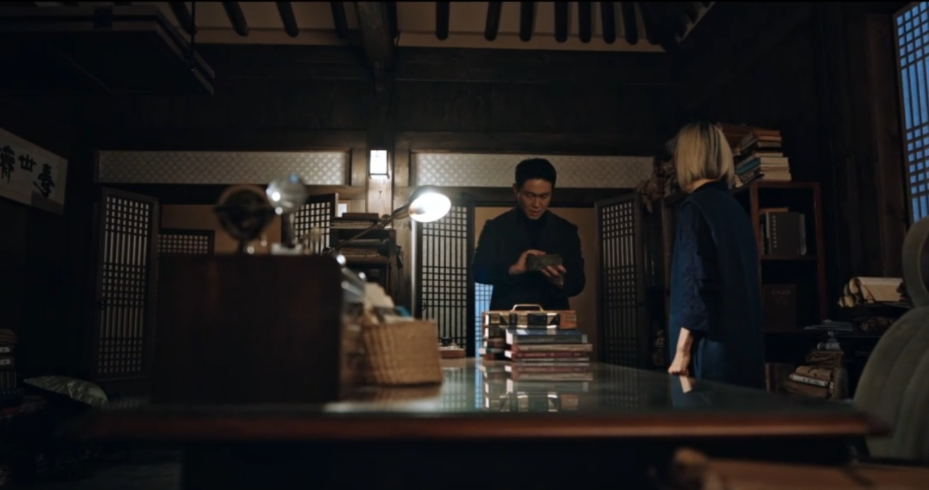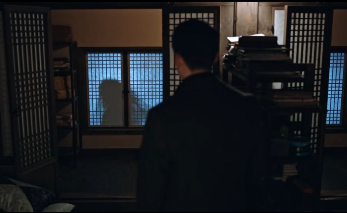 그 시각 할머니는 아빠가 남긴 노트를 보고 있는데 염해상이 찾아온다. 염해상은 구강모 교수가 산영에게 준 붉은 댕기를 보여달라고 한다. 그리고 왜 이걸 구강모 교수가 갖고 있고 연구를 계속했는지, 구강모 교수의 연구 노트가 있을 테니 보여달라고 말을 하는데 그때 또 다른 방문자가 와서 산영의 할머니는 나간다 (산영의 모습을 한 악귀의 방문)