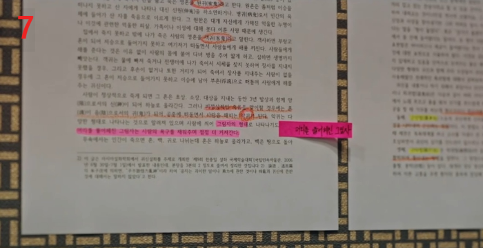 3, 4. 그리고 여기서 궁금한 건, 염해상의 엄마는 뭘 알고 있었나이다. 염해상 엄마의 행동은 악귀를 잘 아는 사람의 행동 같다. 일단, 귀신이 싫어하는 해가 비추는 동쪽으로 이동하고 있었다는 점과 구강모 교수의 노트에 적힌 푸른 옹기조각을 짚으로 두른 다음 묻고 있었기 때문이다