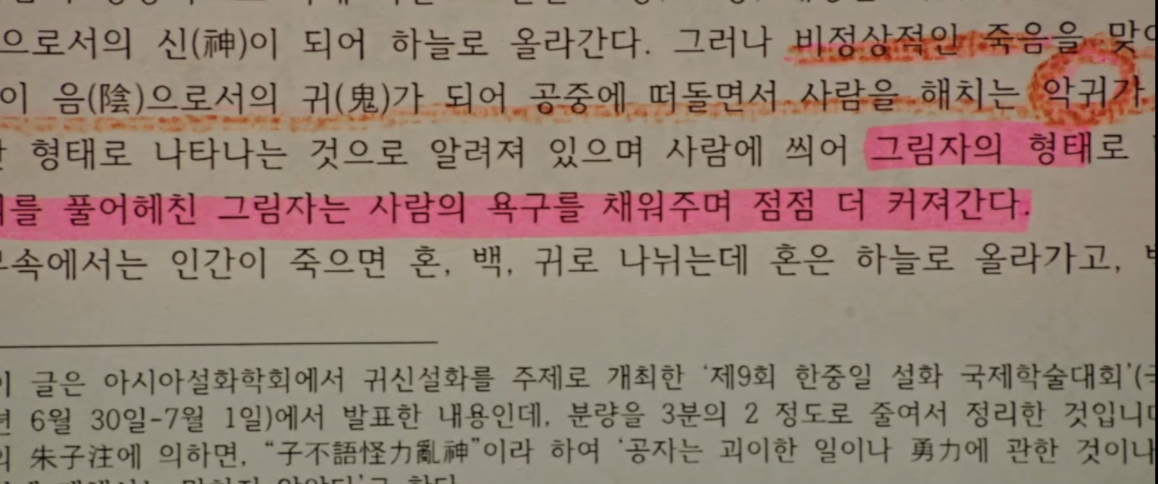 옆의 글은 알아볼 수 없지만, ' 마마를 앓다가 죽은 젊은 여성사' 등 귀신에 대한 내용 같은 게 적혀 있음 (흘긴 글씨 잘 못 알아보는 사람이라 죄송...)