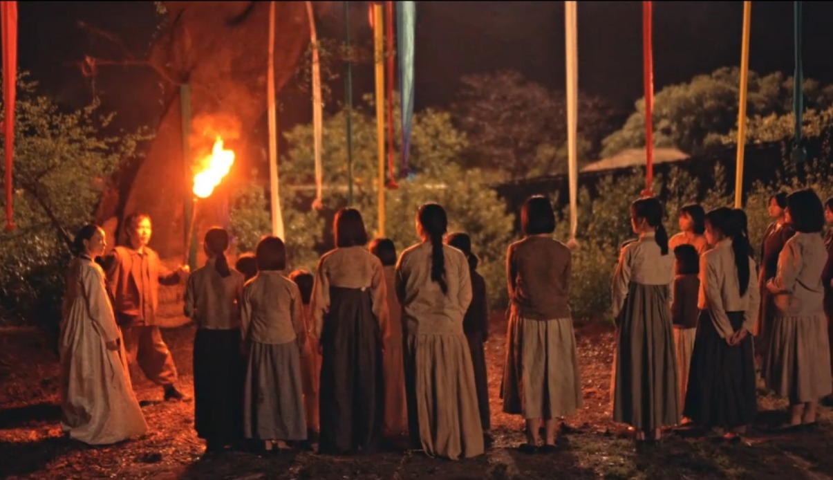왜 악귀가 됐는지 알게 해주는 영상이 나온다. 한 여인이 손에 붉은 댕기를 쥐고 여자아이를 고르는 장면이 나온 후, 방 안에 갇혀 한복을 뒤집어쓰고 붉은 댕기를 쥐고 있는 아이가 나온다. 아이를 데려온 여인은 생고기를 들고 들어와 마치 짐승을 대하듯 오라고 하면서 칼로 찔러 죽이고, 붉은 댕기에 피가 뿌려진다