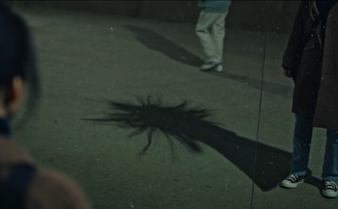 그렇게 악귀는 사라지고 놀란 산영은 자신의 그림자가 거울에선 보이지 않는다는 걸 알게 된다. (다른 사람의 그림자는 있지만 선영의 그림자는 없음) 그러고는 길을 걸으며 다른 사람의 얼굴들이 보이고 할머니 집으로 향하는 환시를 보게 된다