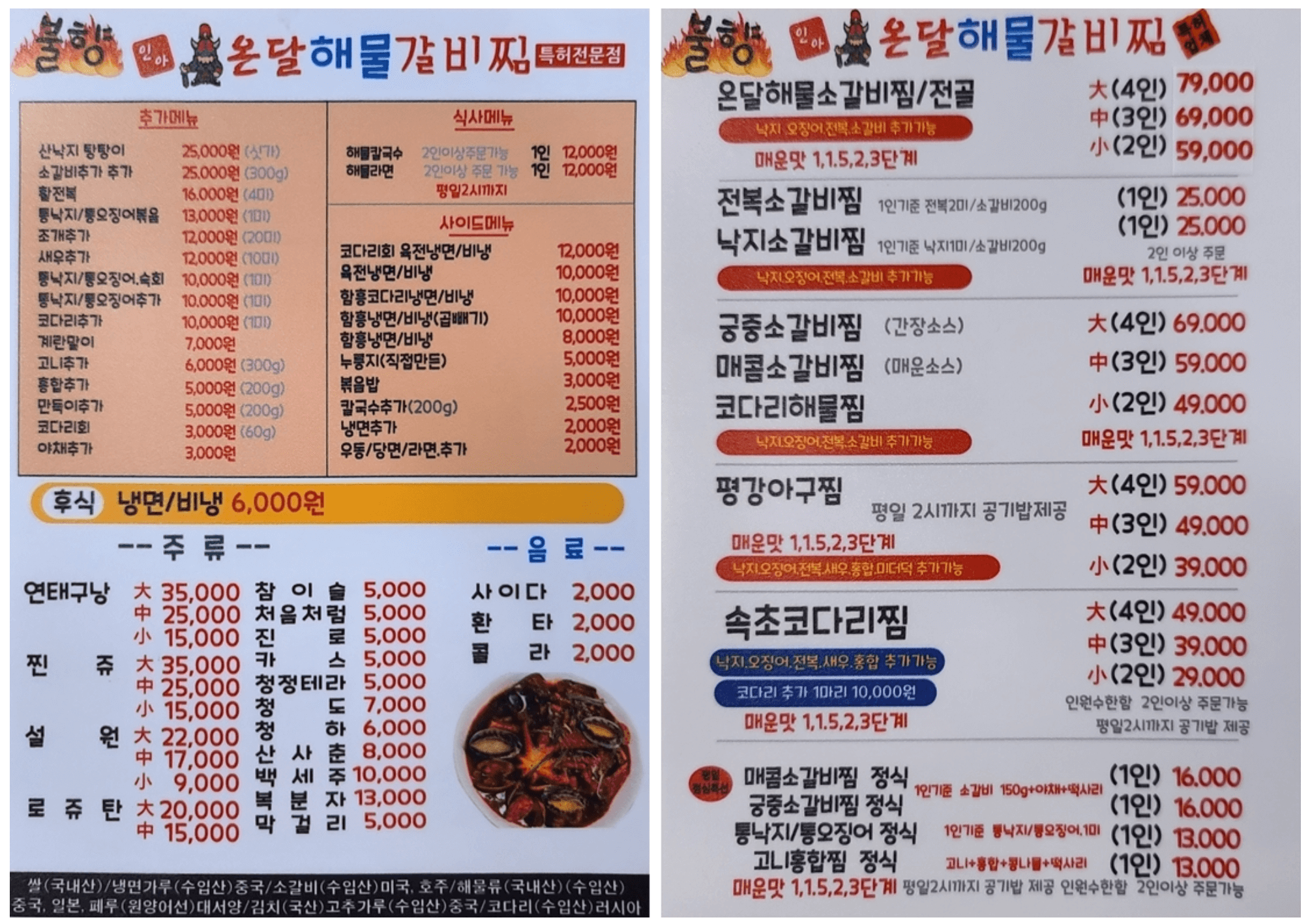 <코다리해물찜 vs 해물소갈비전골>